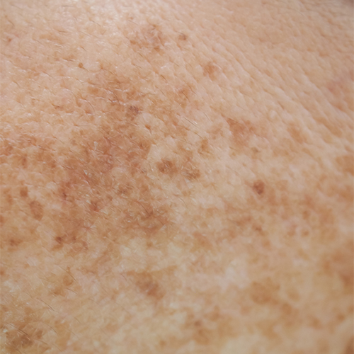 Irregular (dark) discolorations and an uneven complexion are signs of (hyper)pigmentation due to the overproduction of melanin.